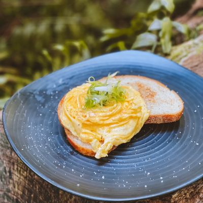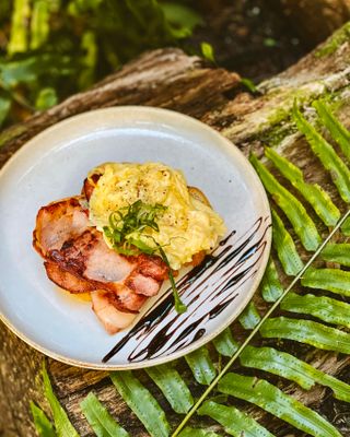 2 Poached, Fried or scrambled eggs, with 2 rashers of Bacon, served on toasted sourdough.