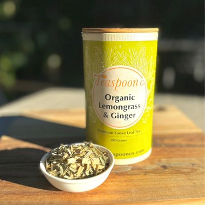 100% Organic, Caffine Free Loose Leaf Lemongrass and Ginger Root Tea.
