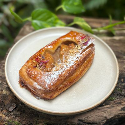 Our delicious toasted buttery croissant, filled with sweet rich mazipan & topped with sliced almonds and icing sugar.