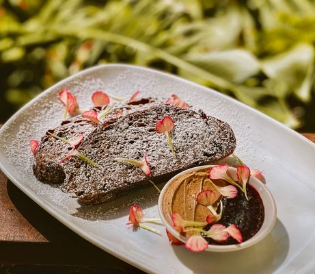 A delightful blend of sweet dates and apricots with our Date & Apricot Toast, served with our specialty house made berry jam and cinnamon butter. Perfect for breakfast or as a snack.
